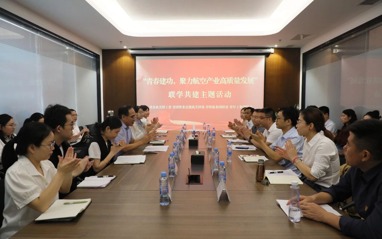 为进一步动员和组织国资国企广大团员青年投身发展大局,助力我省“1269”行动计划,聚力服务航空产业高质量发展,在省直机关团工委、省国资委直属机关党委的悉心指导下,9月25日下午,省国资委直属机关团委联合省铁航集团团委、省军工集团团委举办“青春建功,聚力航空产业高质量发展”联学共建主题活动。