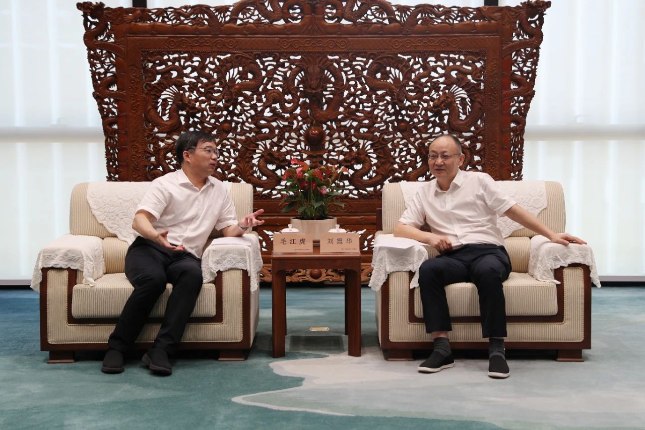 6月16日上午,井冈山市管理局局长、井冈山市政府市长毛江虎一行到访省铁航集团,集团党委副书记、总经理刘震华与毛江虎一行座谈交流。双方就共同加快推进长赣高铁项目建设进行了深入探讨,明确了下一步工作思路和举措。