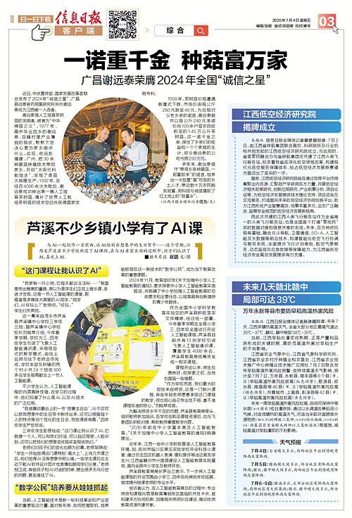 本报讯 信息日报全媒体记者谢梦丽报道:7月2日,由江西省铁航集团联合高校、科研院所及行业机构共同发起的江西低空经济研究院成立。与此同时,省委军民融合办与省铁航集团还共建了江西A类飞行服务站。标志着我省在深化低空领域改革、构建现代化低空服务保障体系、抢占低空经济发展新赛道方面迈出了坚实的一步。